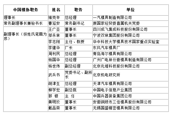 中國模協第五屆理事會理事長和副理事長、秘書長