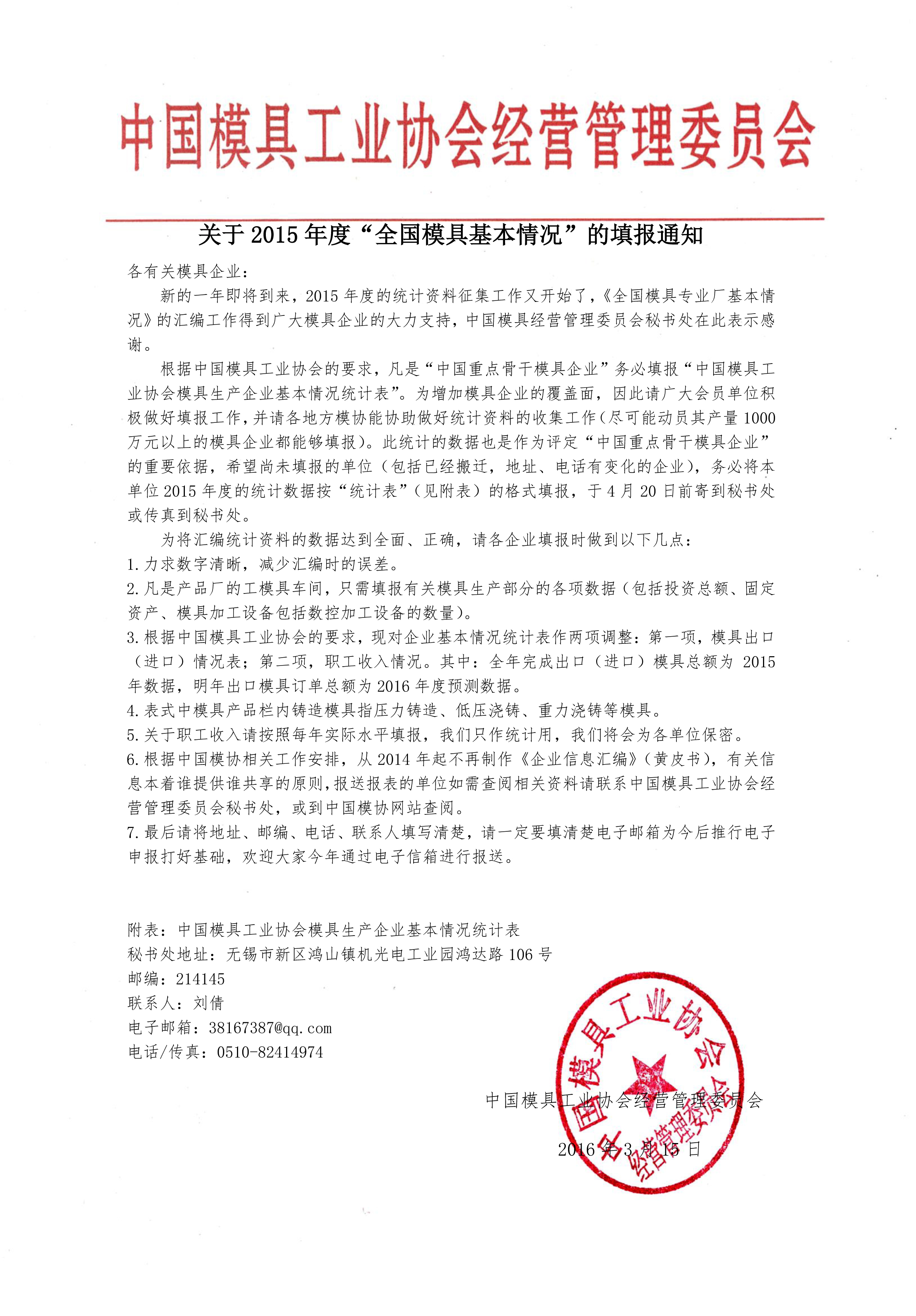 關于2015年度“全國模具基本情況”的填報通知