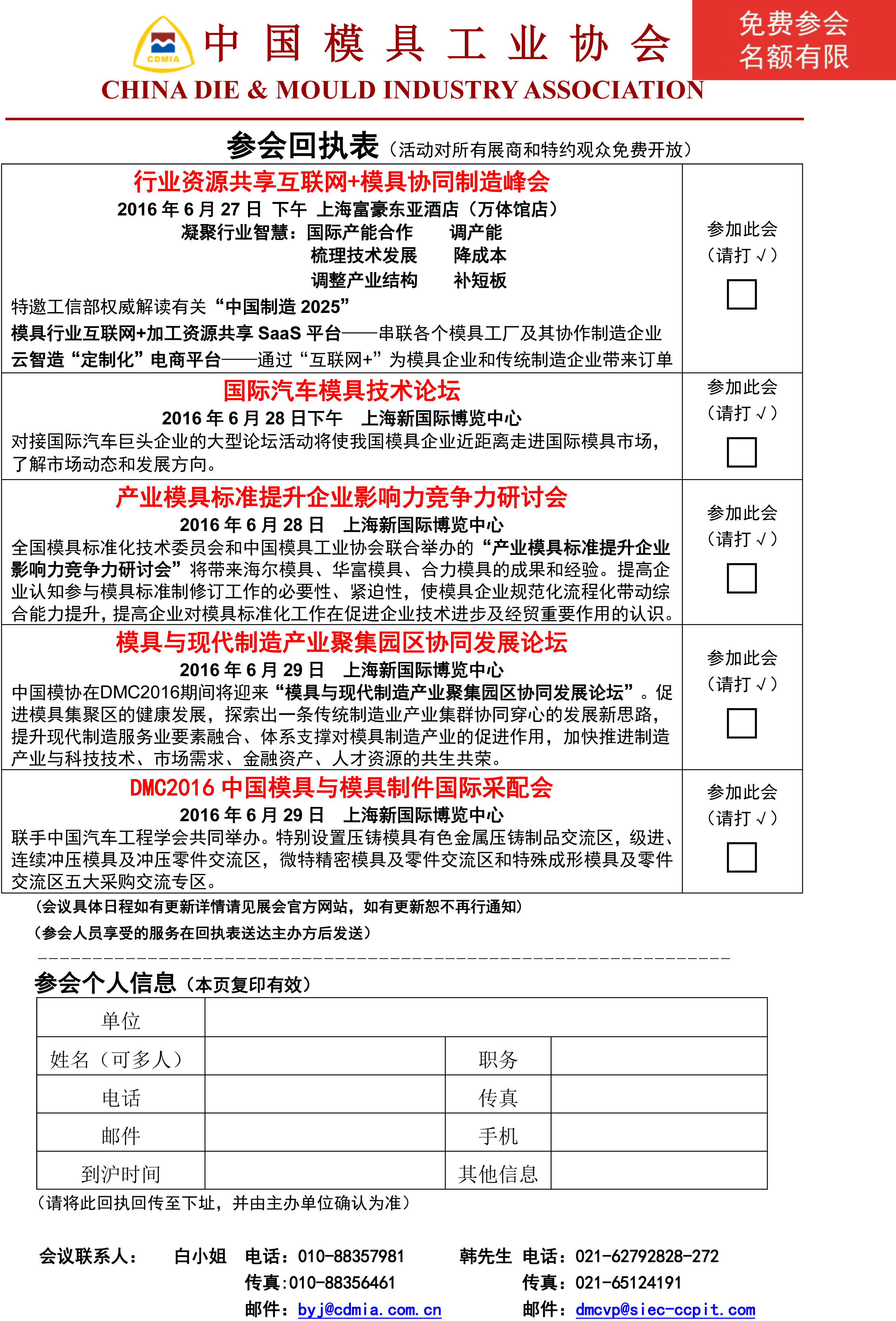 DMC2016中國國際模具技術和設備展覽會同期活動 參會邀請函