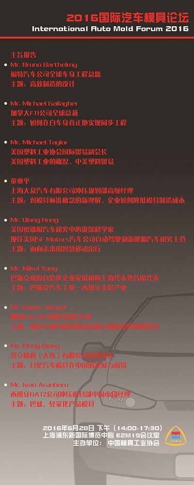 凡有意向參加論壇的企業,請將回執電子郵件發到中國模具工業協會白銀娟收