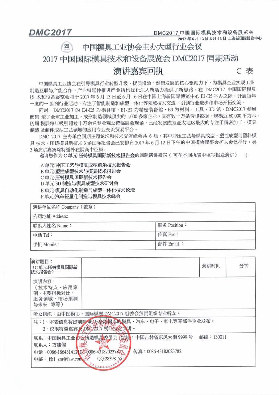 DMC2017同期活動 演講嘉賓回執(zhí)