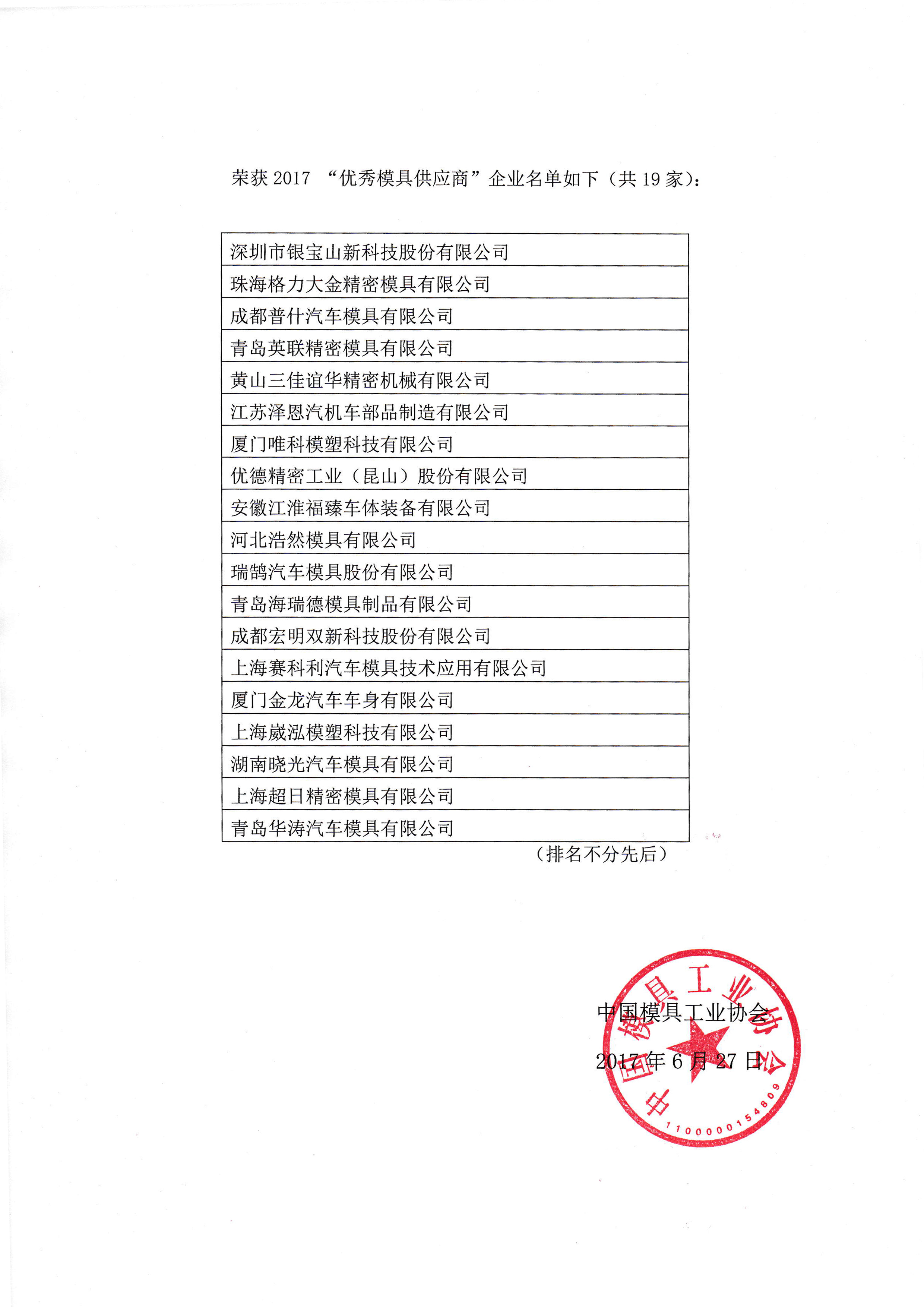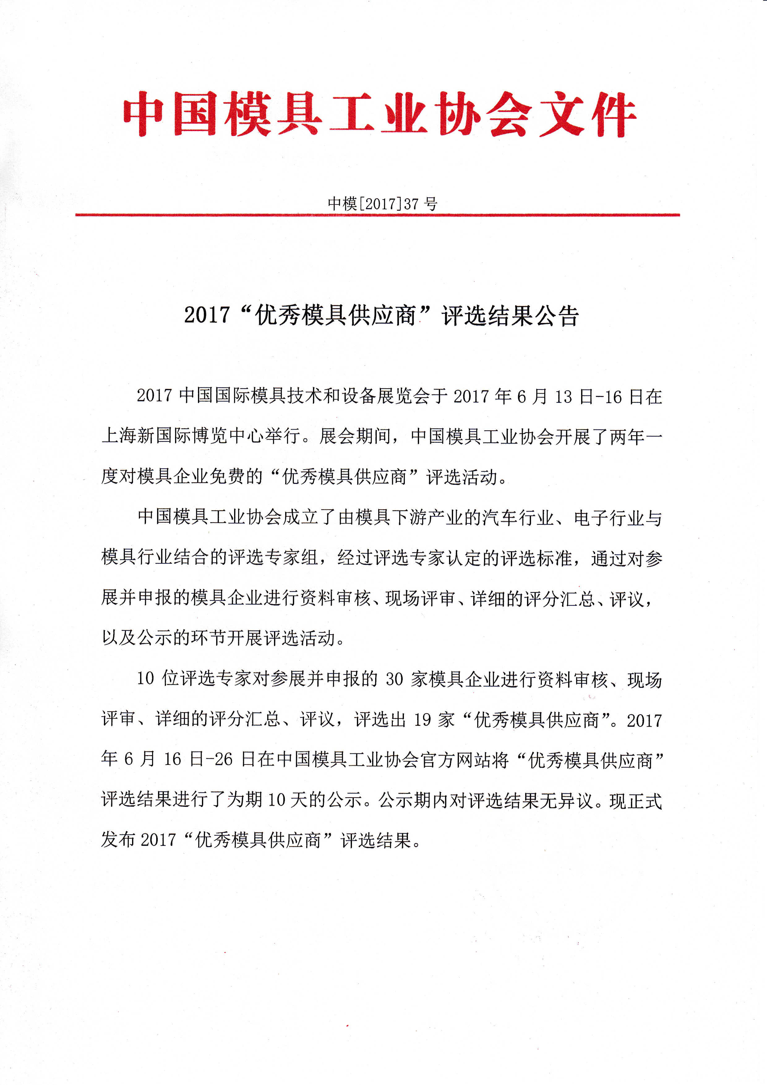 2017“優(yōu)秀模具供應商”評選結(jié)果公告