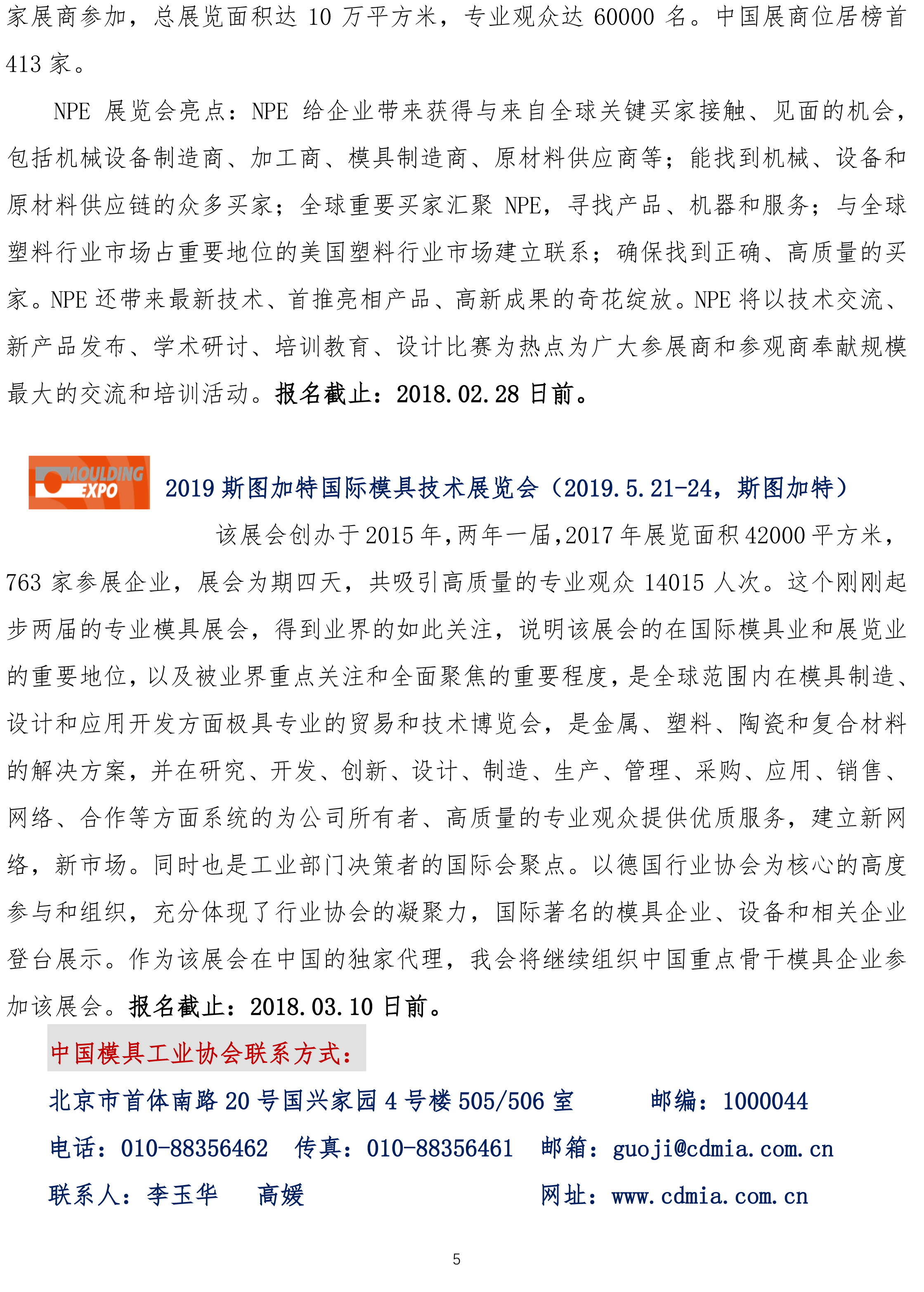 2018年中國模具工業協會組團參加國際著名模具及相關展覽會介紹