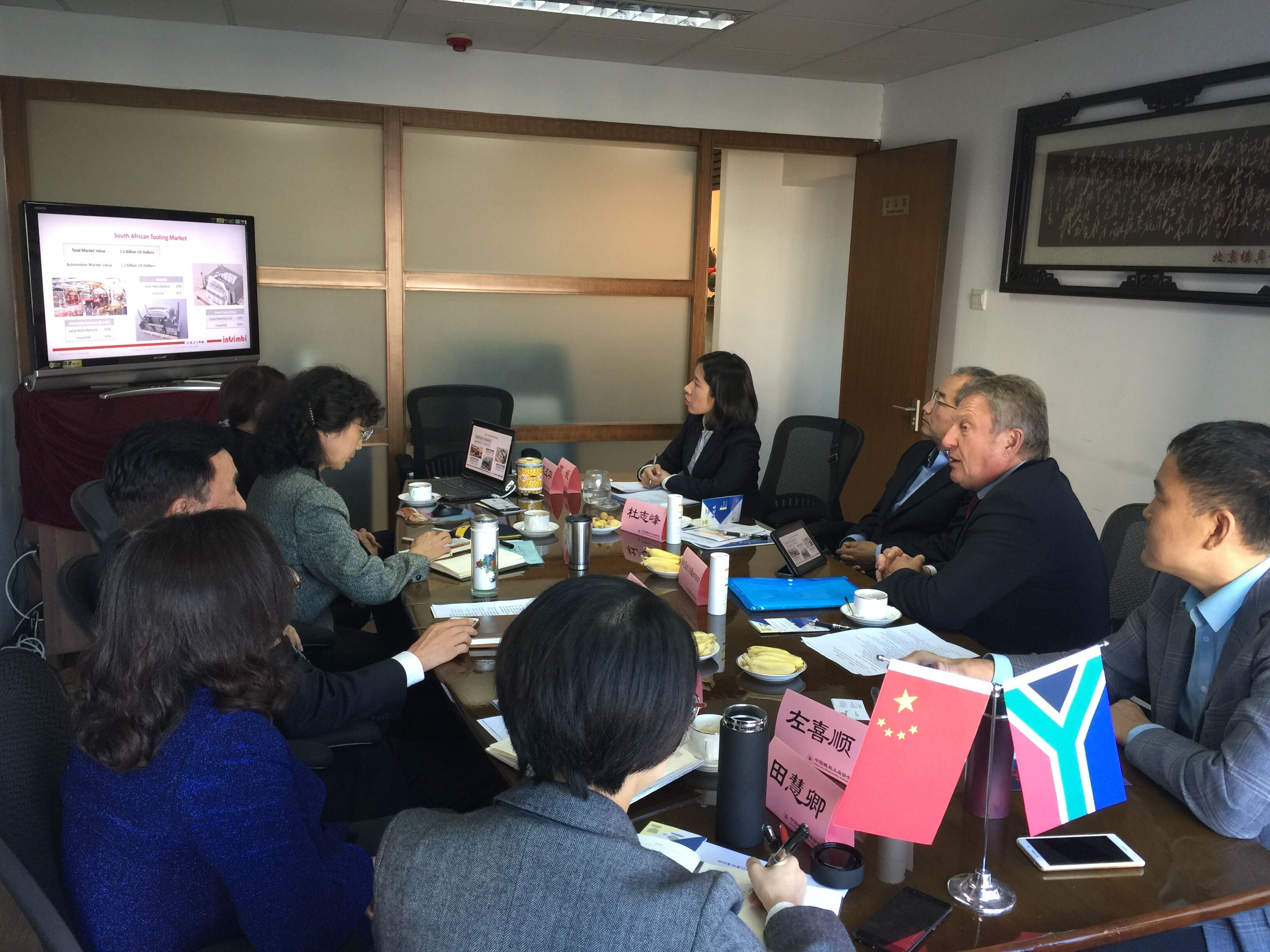 在金磚國家合作五周年,北汽整車南非基地一期建設即將完成之際。2018年10月11日,國際專用工裝和加工協會(ISTMA)主席Mr.Bob Williamson到訪中國模具工業協會秘書處。中國模具工業協會會長武兵書,秘書長秦珂,副秘書長李玉華、張淑杰,北汽國際采購部負責模具專家左喜順,北汽模具總經理杜志峰,中國模具工業協會國際部項目主管高媛、田慧卿參加座談。