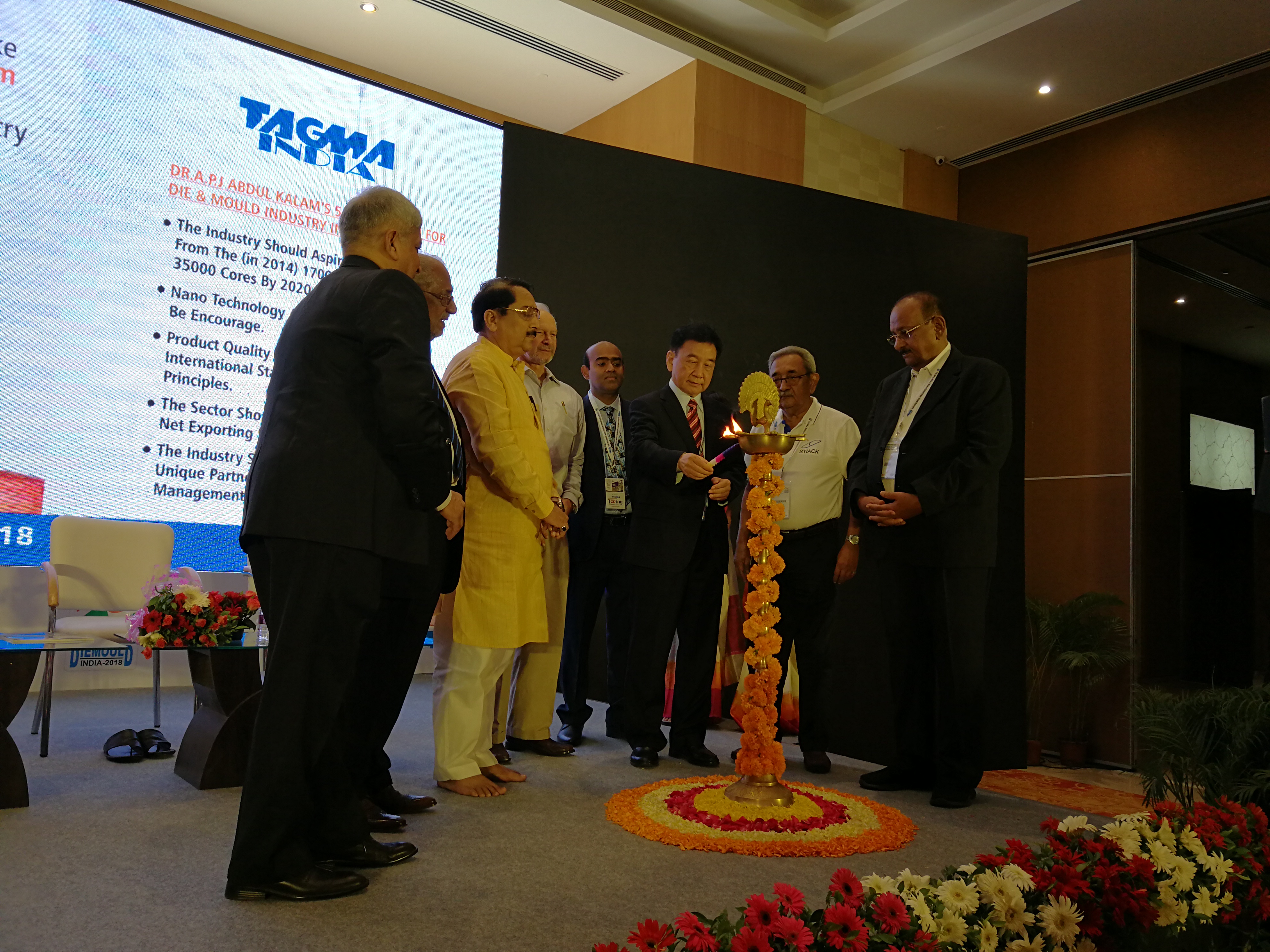 2018年4月11日上午,應(yīng)印度模具工業(yè)協(xié)會的邀請,亞洲模具協(xié)會聯(lián)合會全體代表出席了印度國際模具展覽會( DMI2018)開幕式并觀展。中國模具工業(yè)協(xié)會會長武兵書應(yīng)邀在開幕式上致辭并出席了開幕儀式。