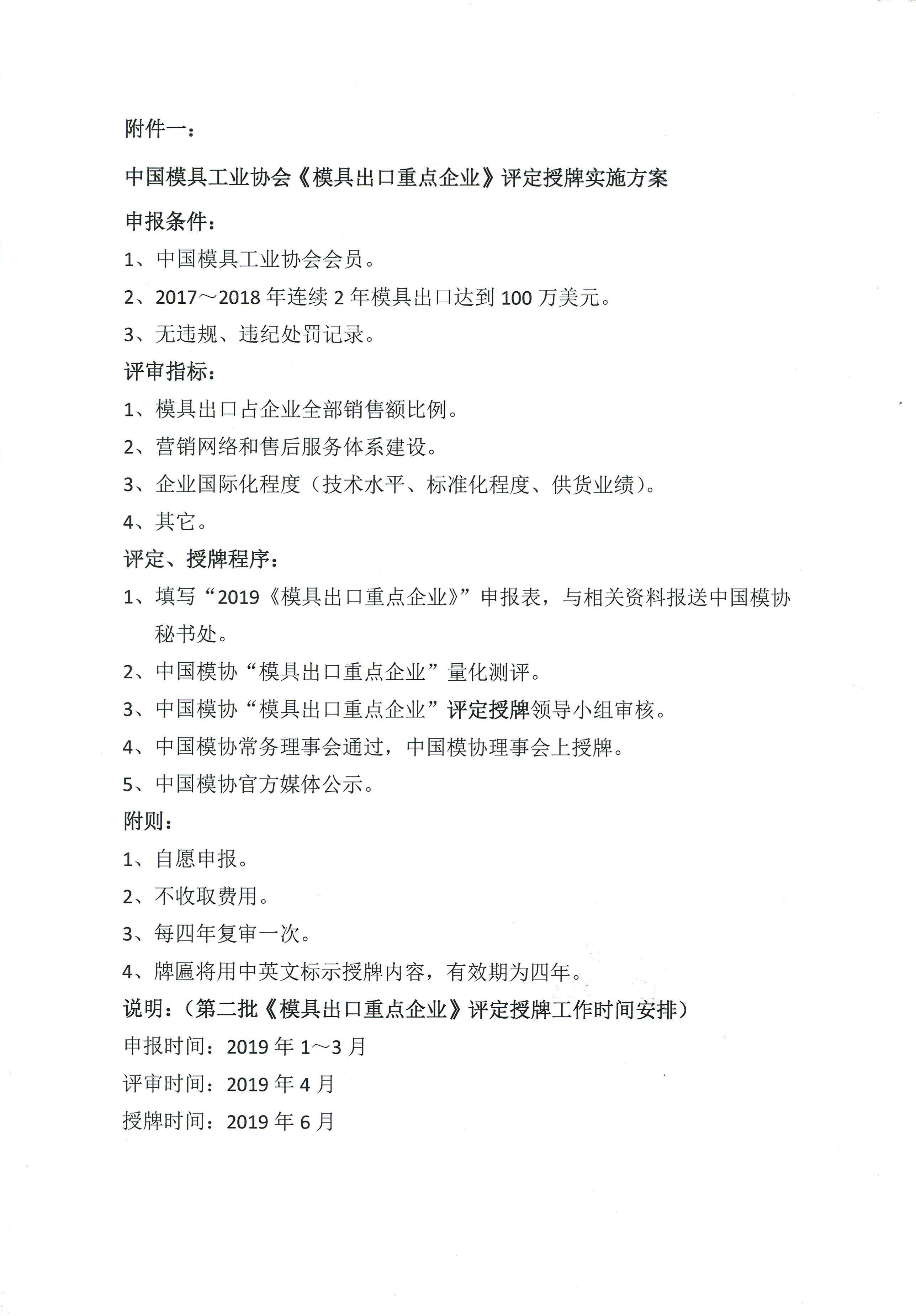 關(guān)于繼續(xù)開展《模具出口重點(diǎn)企業(yè)》評定授牌工作的通知