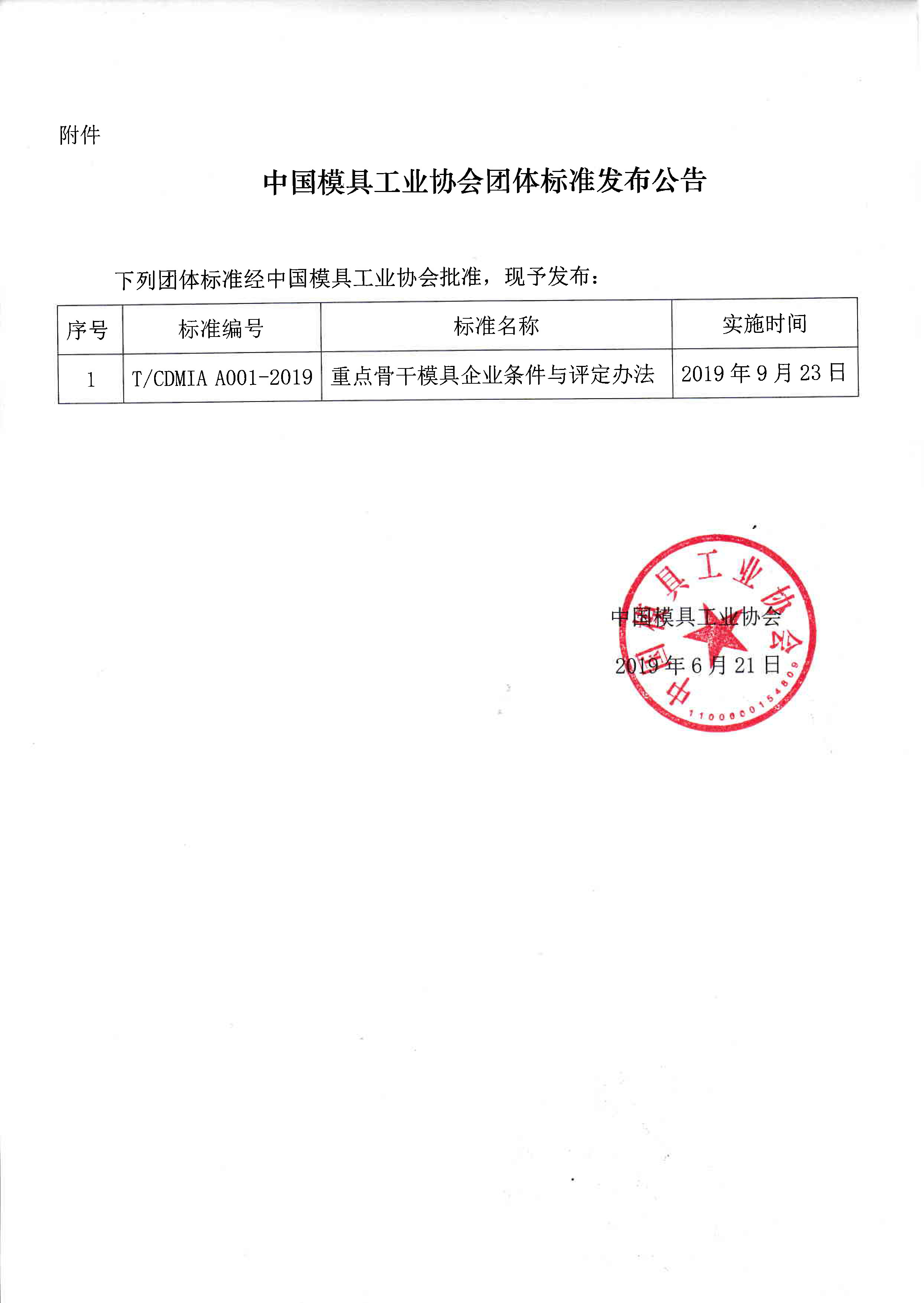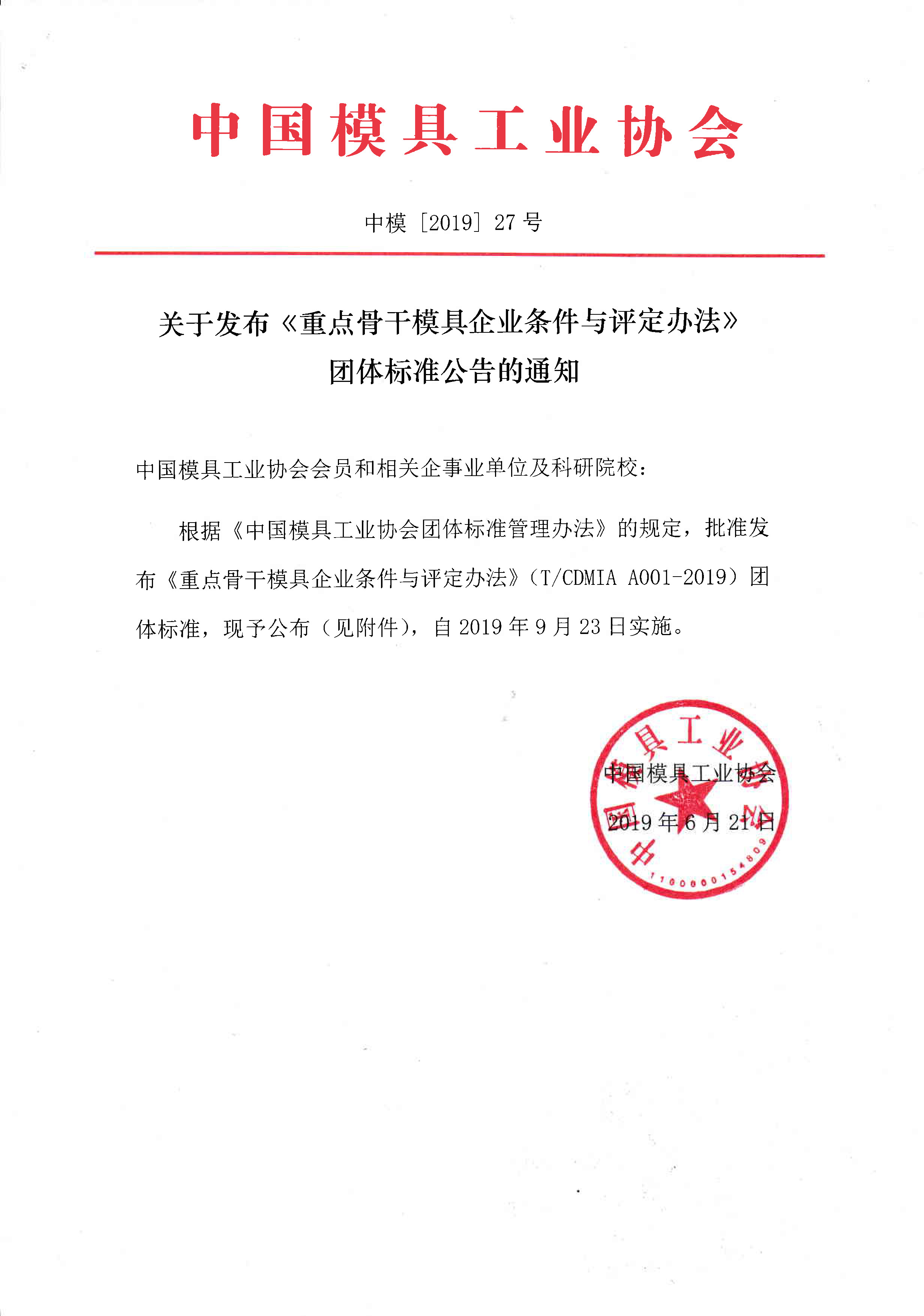 關于發(fā)布《重點骨干模具企業(yè)條件與評定辦法》團體標準公告的通知