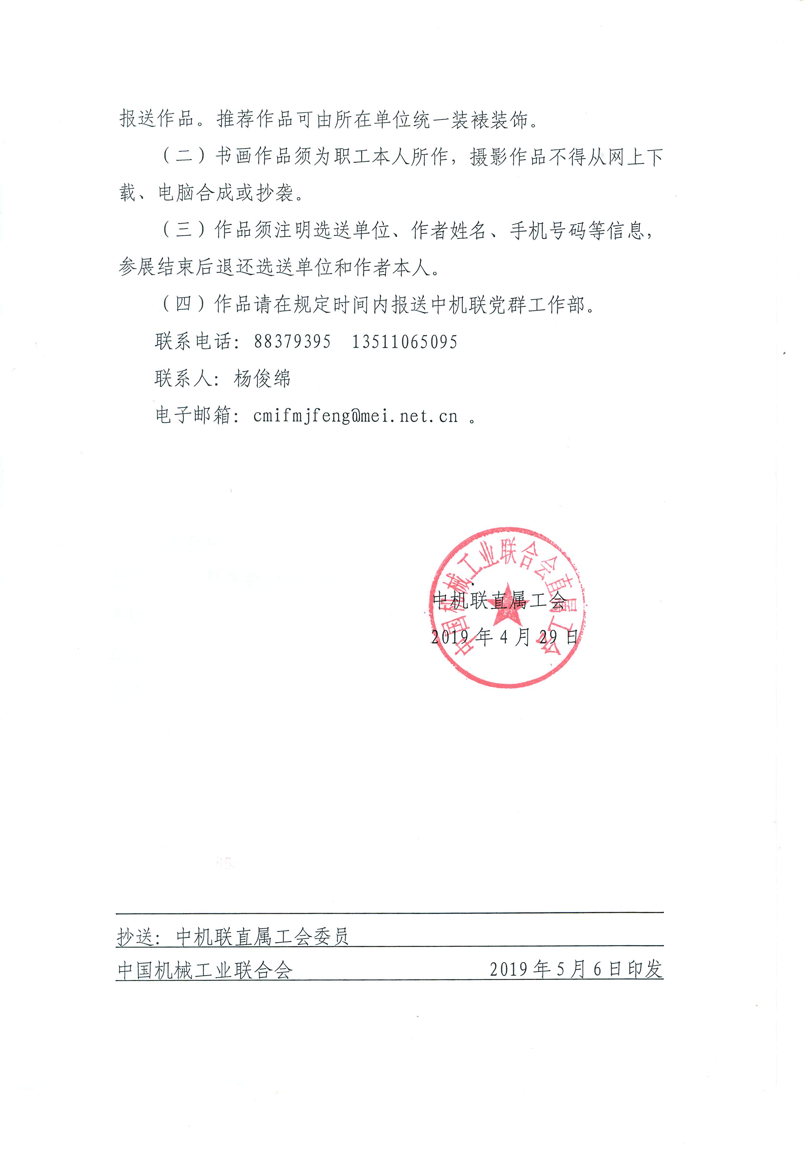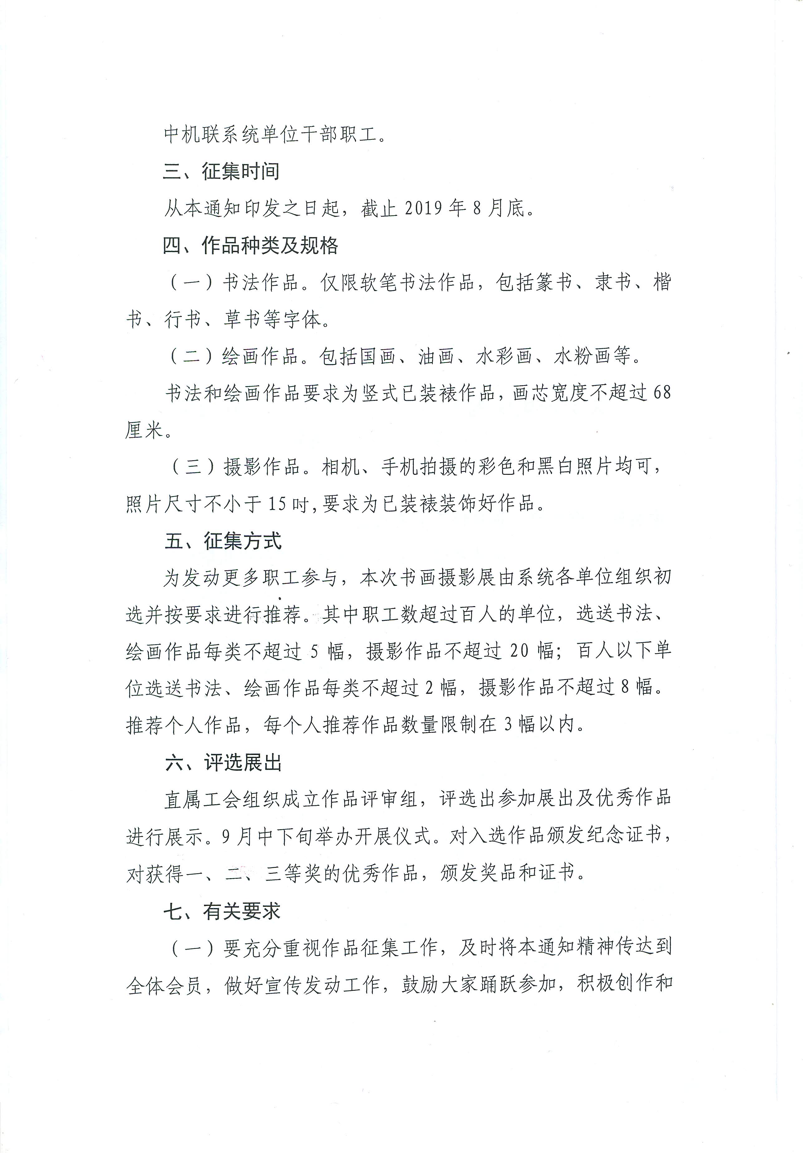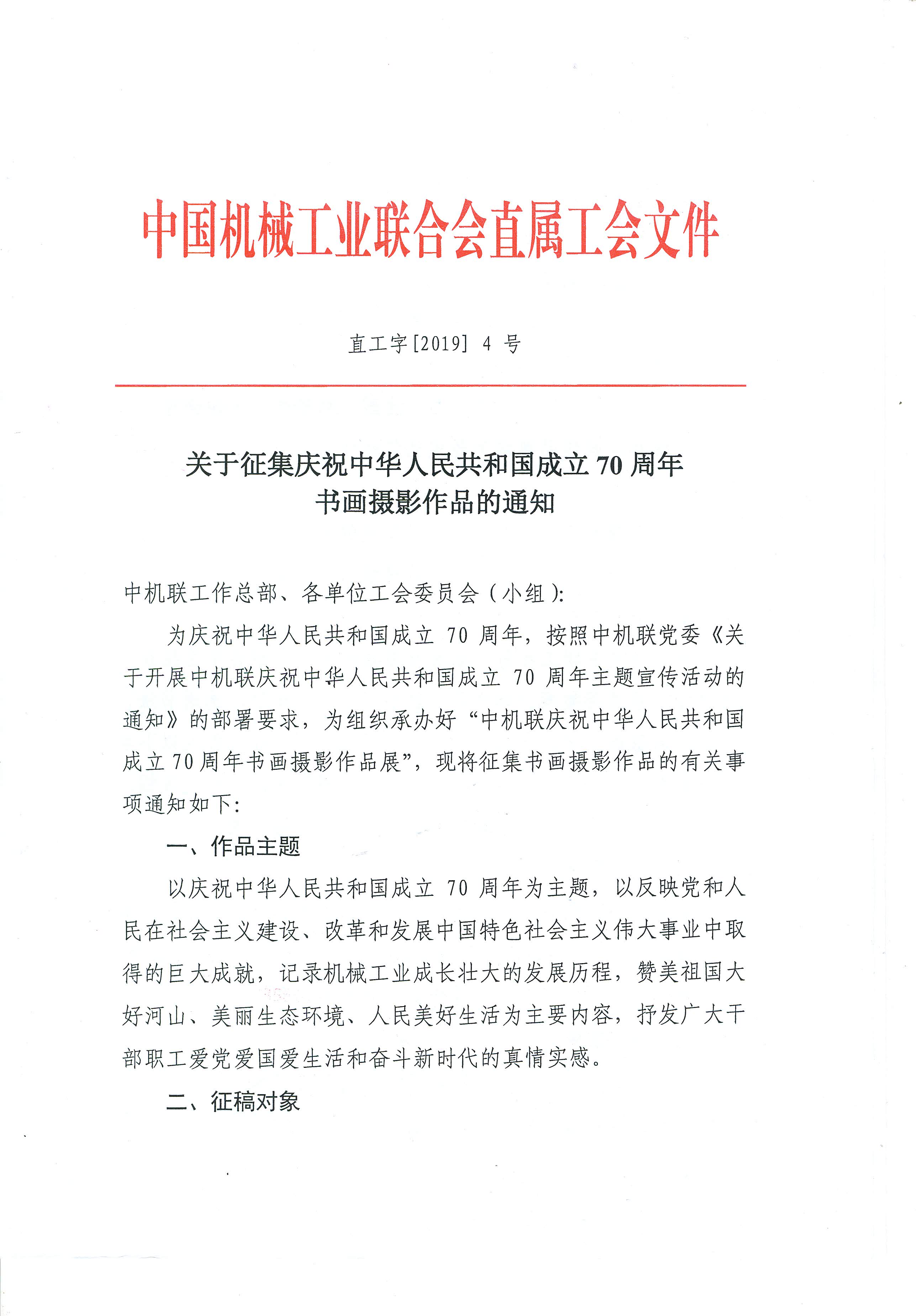 關于組織參加中機聯慶祝中華人民共和國成立70周年書畫攝影作品展的通知