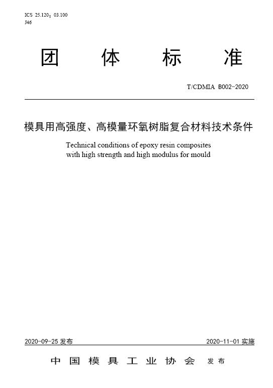 中國模協(xié)標(biāo)準(zhǔn)B002-模具用高強(qiáng)度、高模量環(huán)氧樹脂復(fù)合材料技術(shù)條件-2020