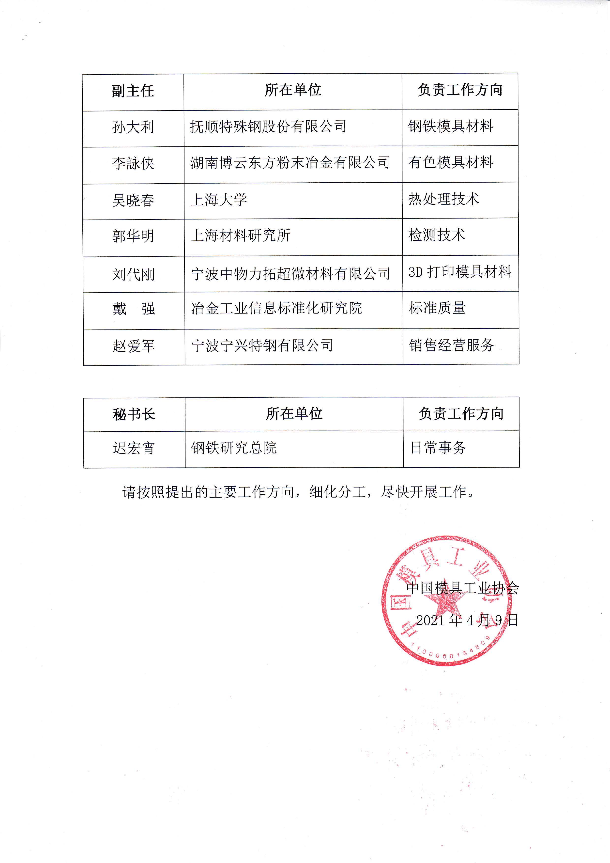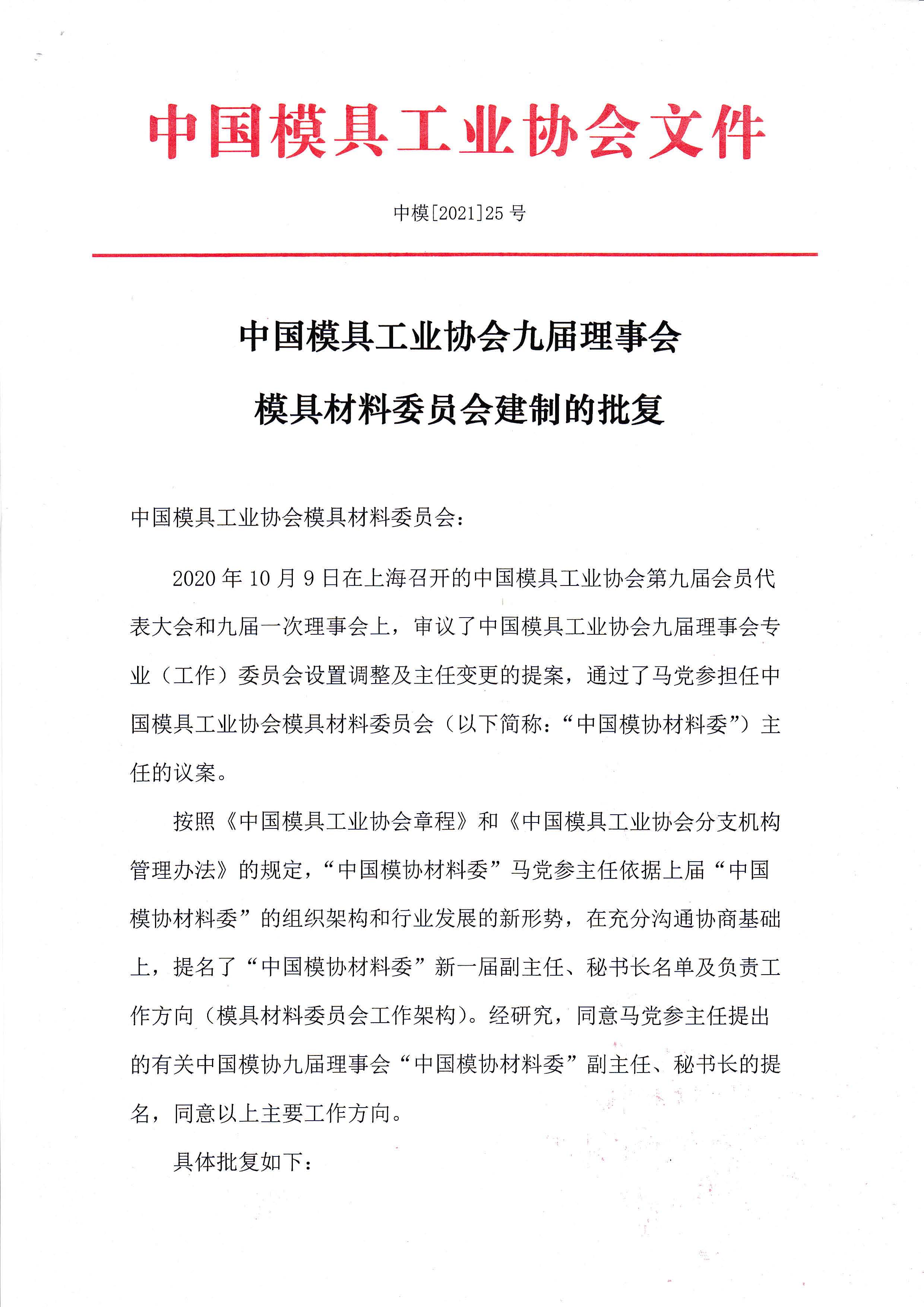 第九屆理事會(huì)模具材料委員會(huì)建制的批復(fù)