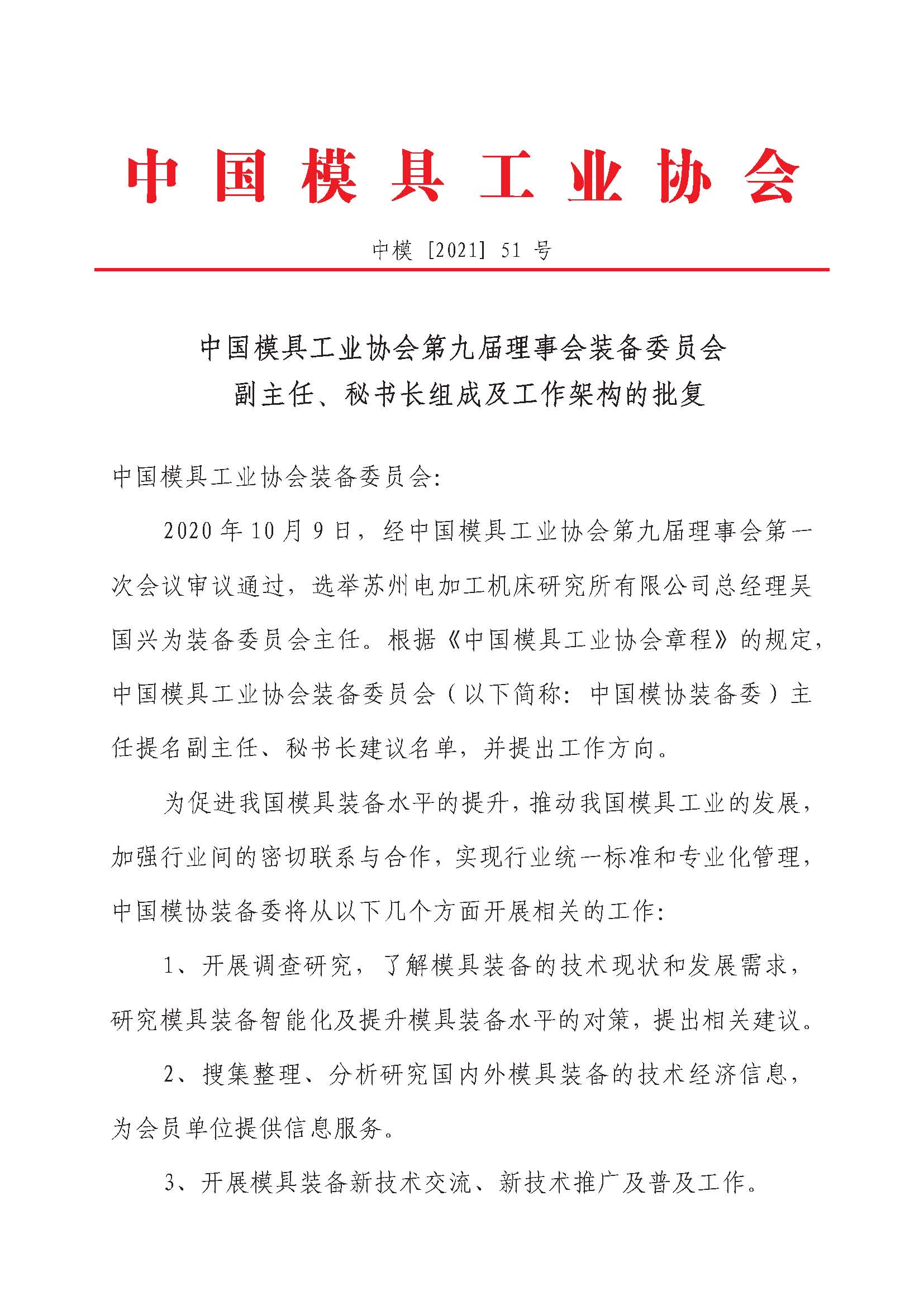 中國模協(xié)第九屆理事會裝備委員會副主任、秘書長組成及工作架構(gòu)的批復(fù)