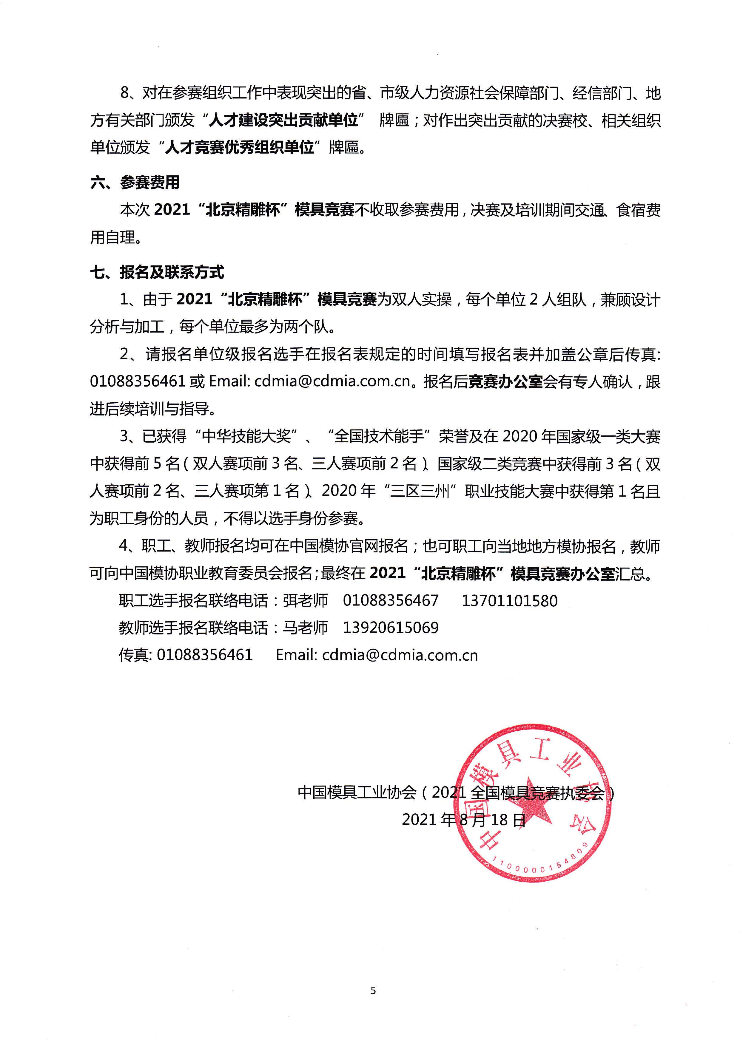 2021年人社部全國行業(yè)職業(yè)技能競賽——第十九屆全國機械行業(yè)職業(yè)技能競賽(“北京精雕杯”模具)報名通知
