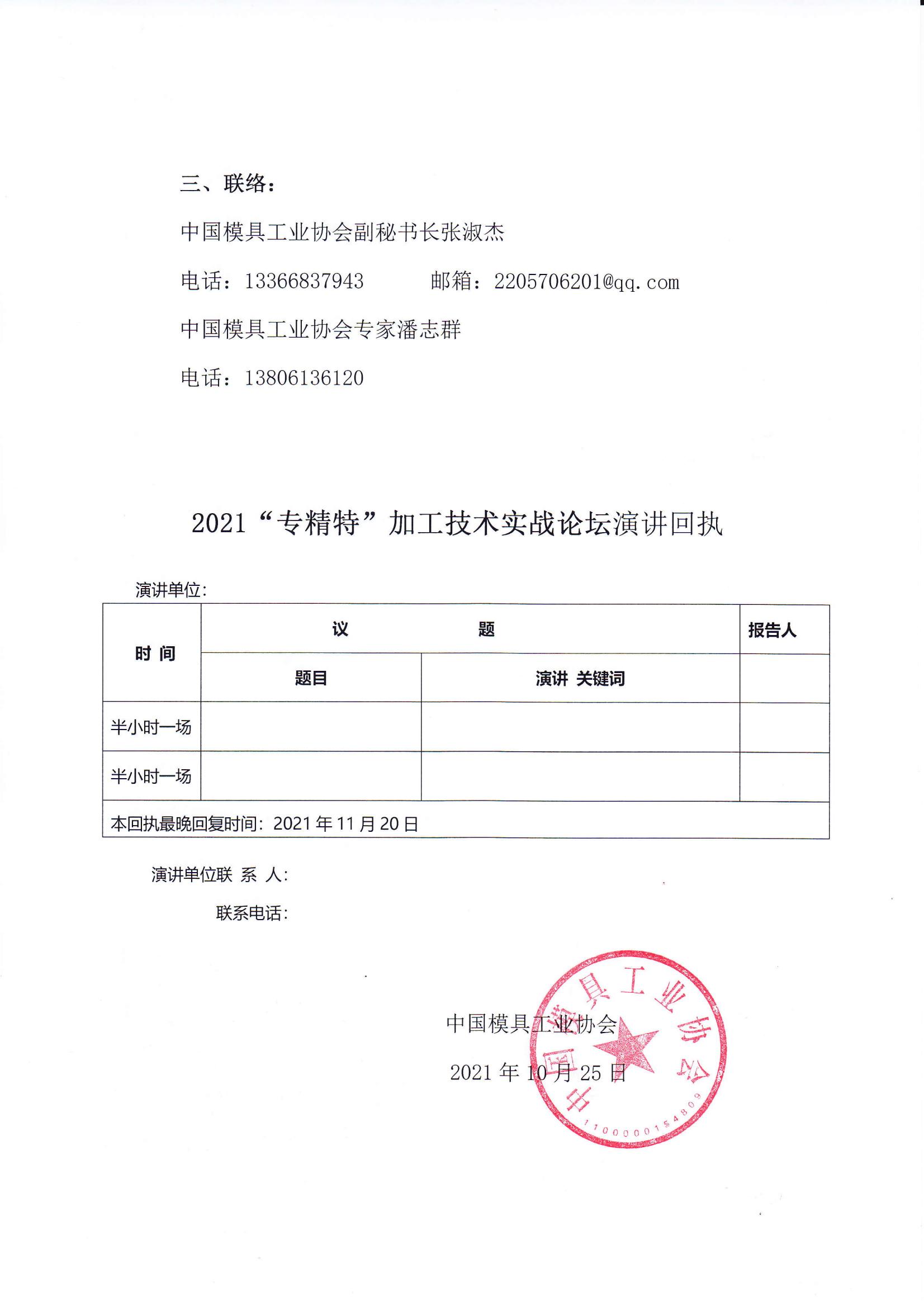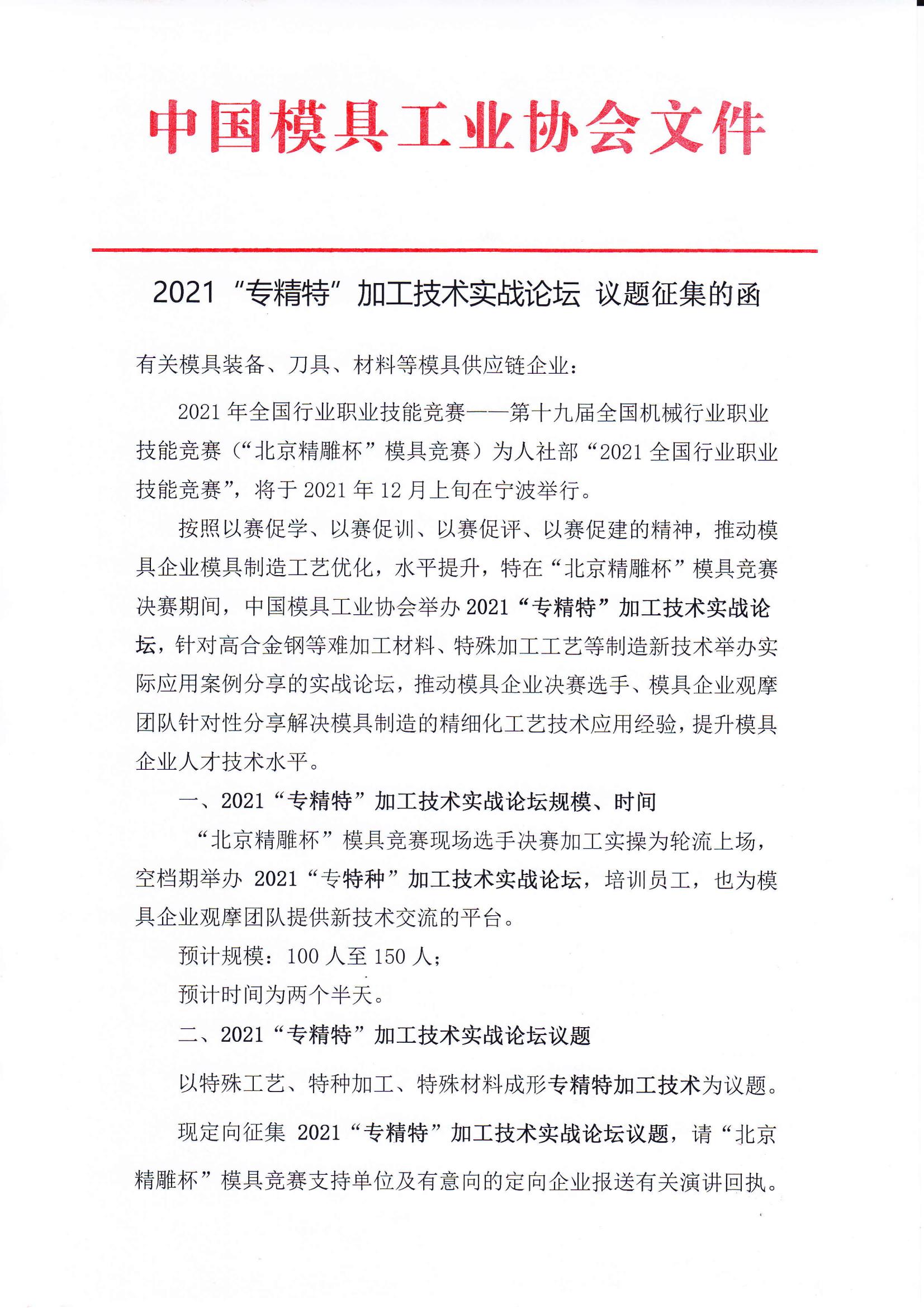 2021“專精特”加工技術(shù)實(shí)戰(zhàn)論壇議題征集的函