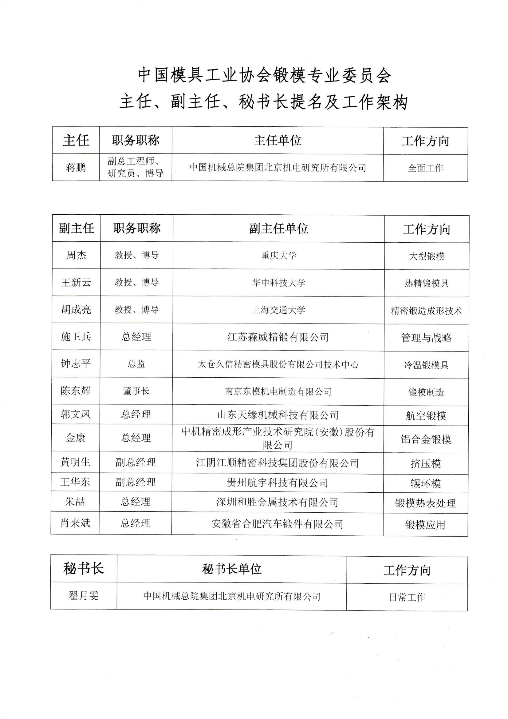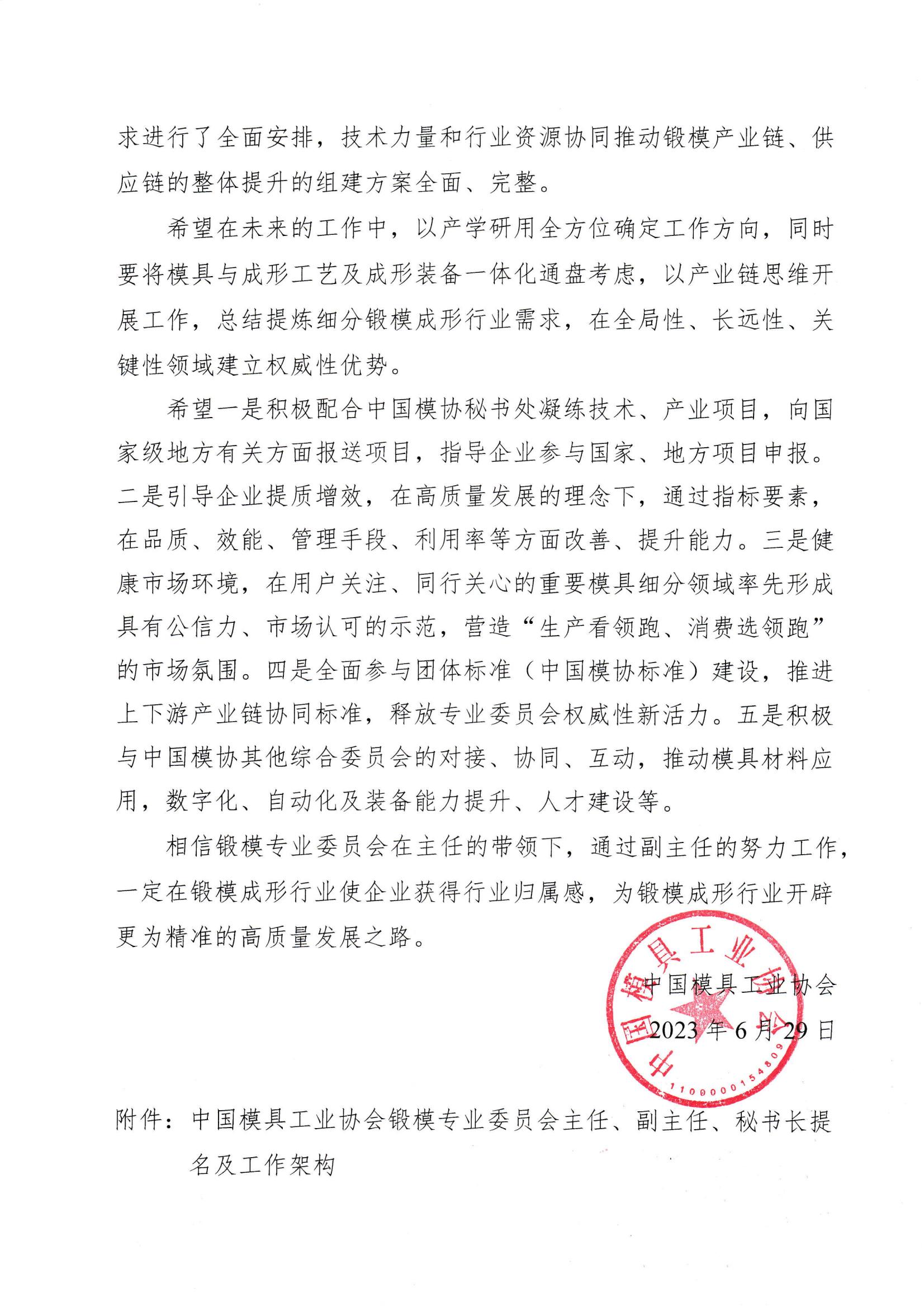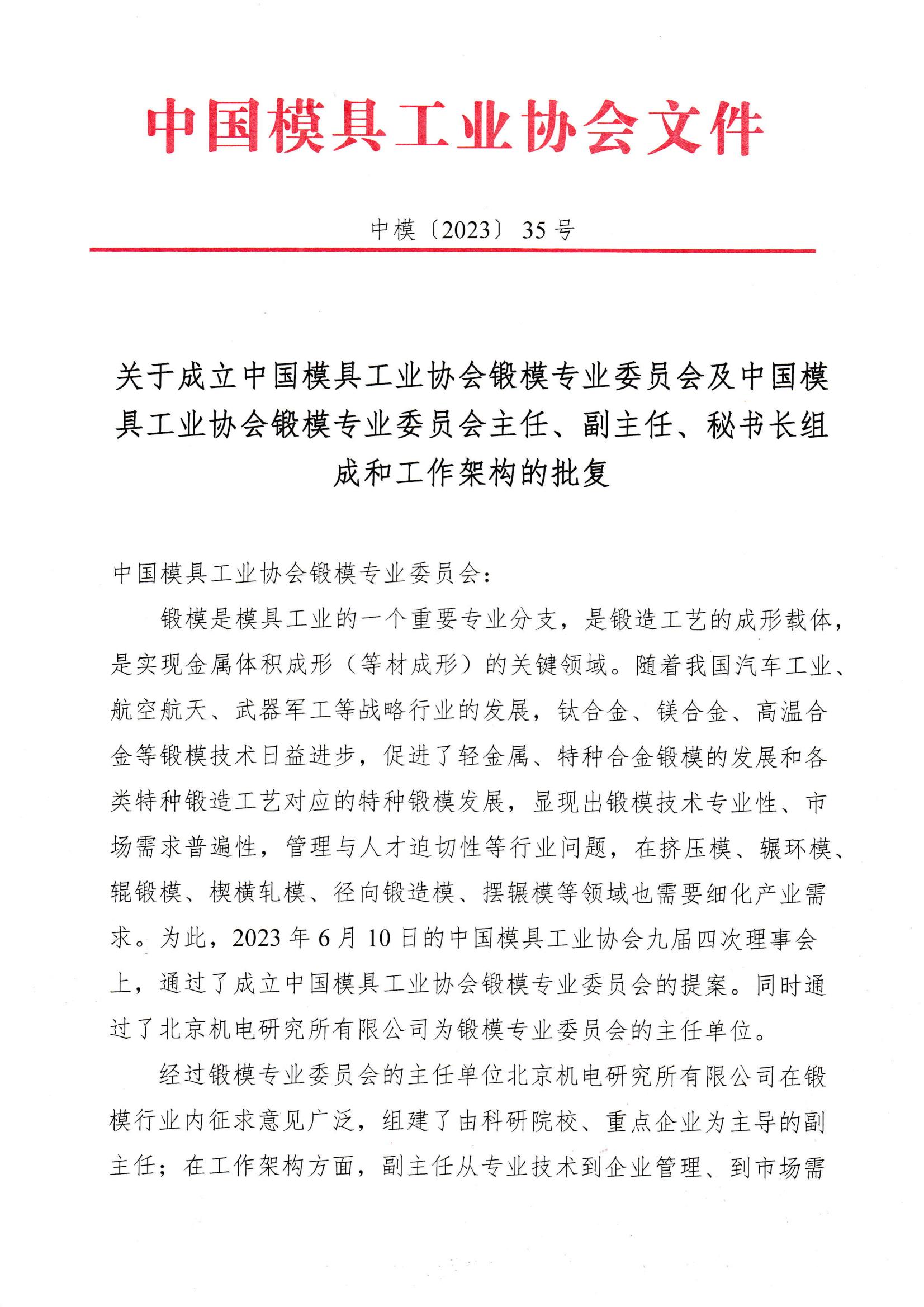 關(guān)于成立中國模具工業(yè)協(xié)會鍛模專業(yè)委員會的批復
